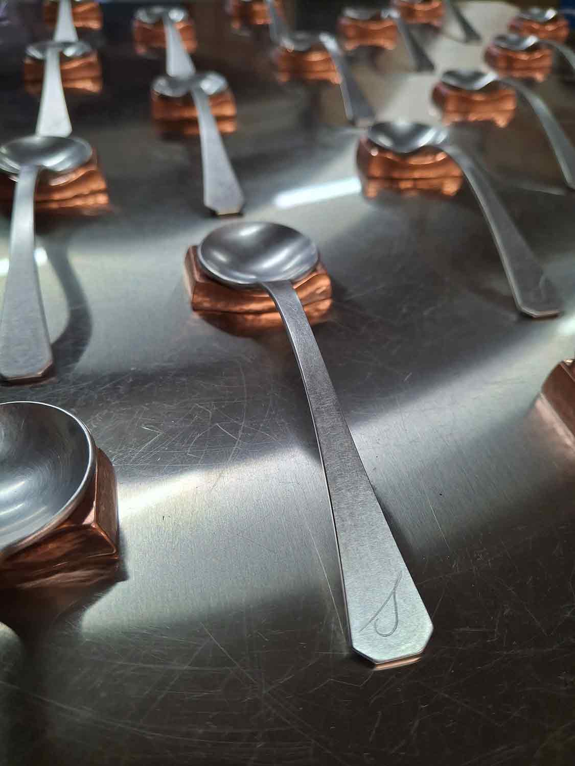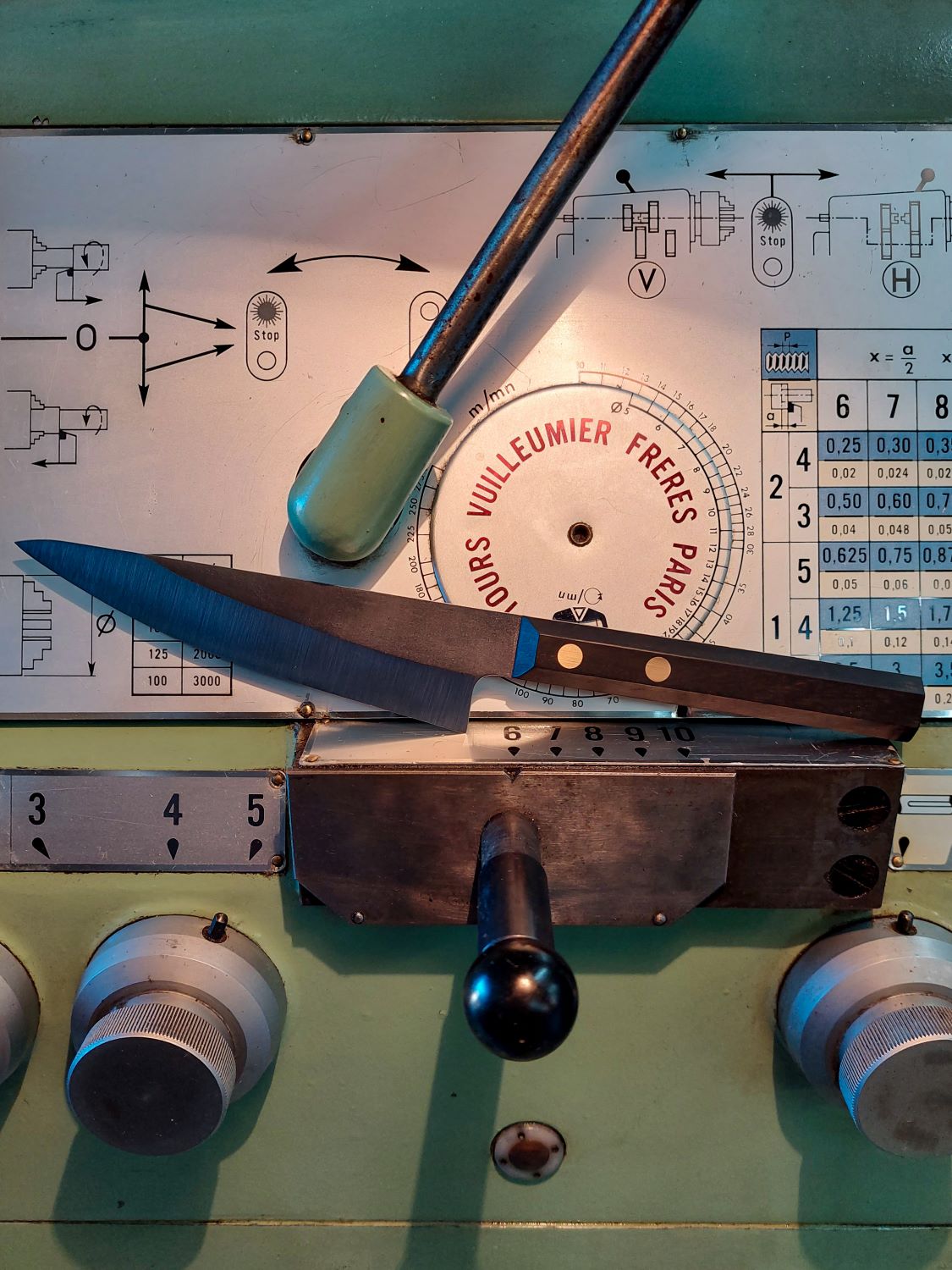 Equipé de machines conventionnelles et à commande numérique, il me sera possible de répondre à vos demandes les plus variées : de la pièce unique à la production en série, de l’ustensile exclusif pour une recette signature à un ensemble de couverts sur mesure pour votre établissement