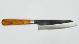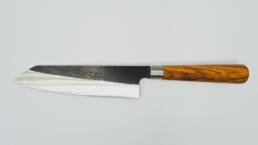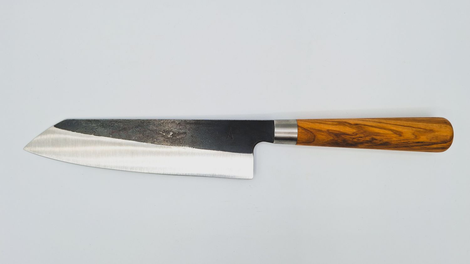 Doté d’une lame de 18 cm de longueur en acier inoxydable X50CrMoV15 traité thermiquement, d’une mitre en inox 304L taillée dans la masse et d’un manche en olivier, ce couteau a été conçu pour accompagner chaque cuisiner/ère qu’il/elle soit néophyte ou professionnel/le aguerri/e.